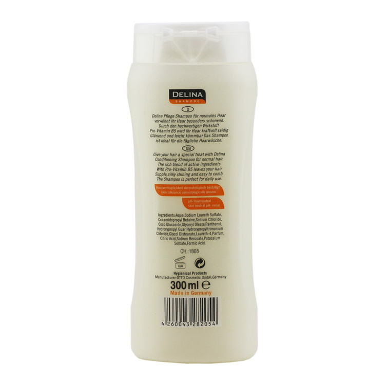 برند دلینا یک برند معتبر آلمانی مربوط به کمپانی پر آوازه OTTO Cosmetic GmbH که در حوزه تولید محصولات آرایشی و بهداشتی در حال فعالیت است و محصولات خود را به بسیاری از کشورهای جهان صادر می کند و به دلیل کیفیت بالا محصولاتش توانسته است سهم به سزایی از بازار را نصیب خود کند که به جرآت می توان گفت تمامی محصولات این کمپانی منطبق با آخرین استانداردهای جهانی همچون استاندارد GMP و استاندارد های بین المللی IFS - HPC تولید می شوند. از محصولات با کیفیت این کمپانی می توان به شامپو مناسب موهای معمولی دلینا اشاره کرد این شامپو انواع آلودگی ها را از روی مو و کف سر به طور کامل پاک می کند همچنین مواد مغذی موجود در این شامپو موها را تقویت و بازسازی می کند طوریکه پرو ویتامین B5 به کار رفته در ترکیبات آن دارای خاصیت التیام بخشی برای پوست است که به رشد مو کمک می کند و در نهایت باعث بهبود سلامت تار موها شده همچنین پرو ویتامین B5 دارای خاصیت آبرسانی و مرطوبکنندگی بسیار بالایی است که علاوه بر رطوبترسانی به مو و کف سر، به حفظ رطوبت هر چه بیشتر آنها کمک می کند و مانع خارش و التهاب کف سر می شود و با ایجاد یک لایه پوشاننده بر روی مو موجب حالت پذیری، شفافیت و لطافت بیشتر مو ها می گردد.